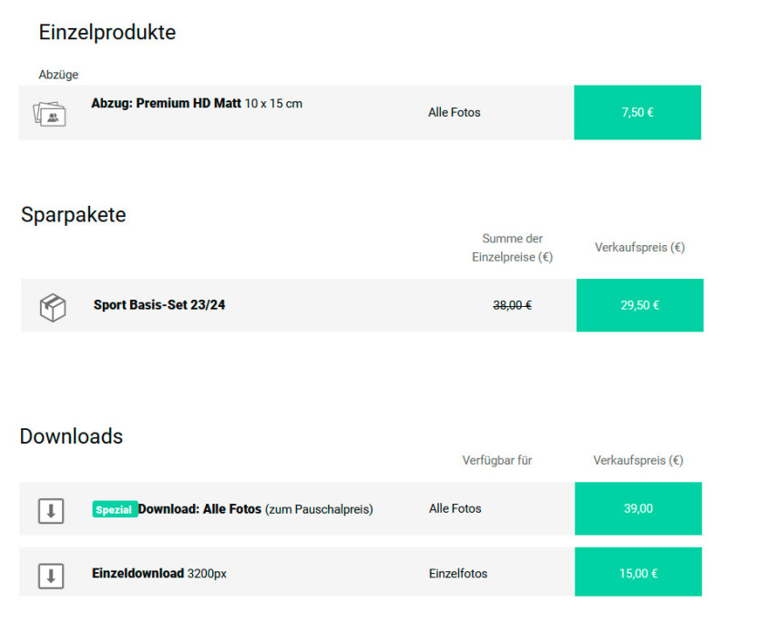 Für Deinen Verein / Verandtaltung entstehen keinerlei Kosten. Der Sportler bezahlen nur die Motive, die sie bestellen. Sie können die Fotos in einem gesicherten